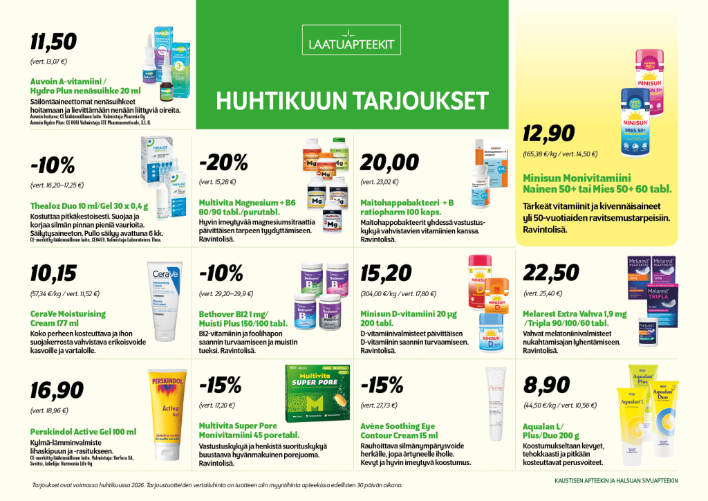 Olet lämpimästi tervetullut oman kylän apteekkiin.